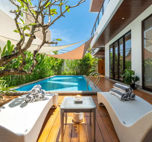 • Private swimming pool with sun lounges & outdoor seating